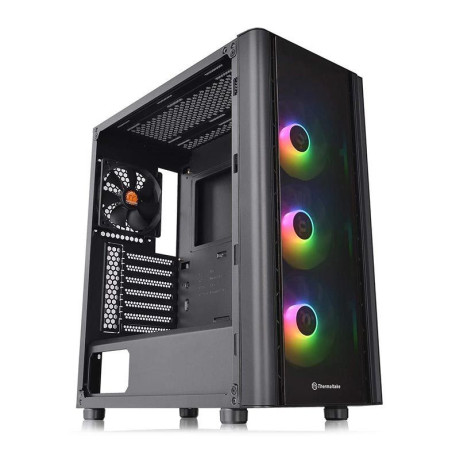 O Thermaltake v250 tg argb é um gabinete de torre média (mid-tower) que vem com três fans frontais argb de 120 mm pré-instalados, um fan traseira padrão de 120 mm pré-instalado e pode suportar até uma placa-mãe atx padrão.